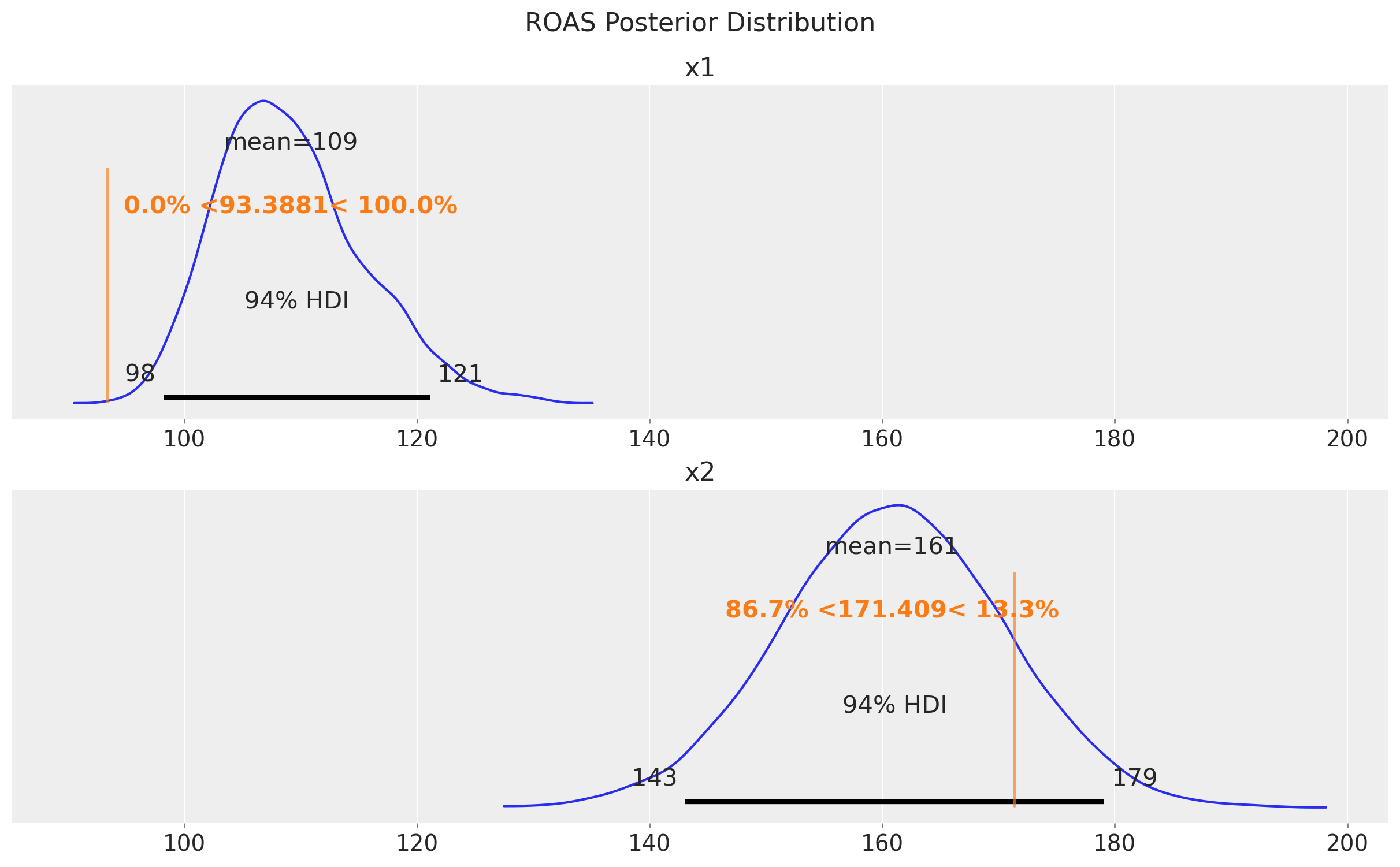 Finally, let’s compute the ROAS for the x1
